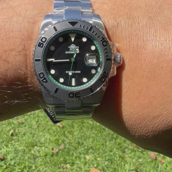 El ADDIESDIVE BGW9 es un reloj deportivo de cuarzo diseñado para aventuras extremas y estilo robusto. Fabricado en acero inoxidable 316L de grado marino, cuenta con una caja de 41 mm, cristal mineral endurecido y bisel unidireccional de 120 clics. Su luminiscencia BGW9 azul ultrabrillante garantiza visibilidad en la oscuridad por hasta 5 horas. Con resistencia al agua de 200 metros (20 ATM), corona atornillada y correa de caucho elástica, es ideal para buceo, natación y uso diario. Un reloj confiable, duradero y con carácter.
