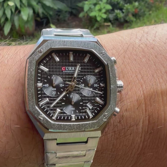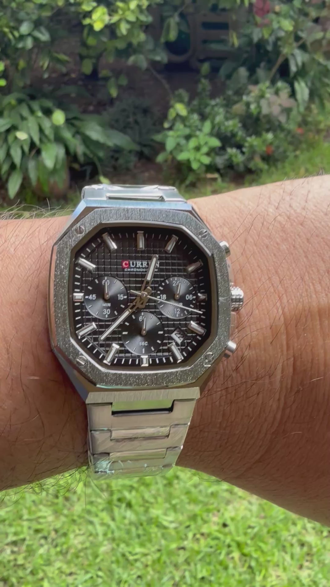 El Curren 8459 es un reloj masculino que destaca por su diseño moderno y funcionalidad completa. Equipado con movimiento de cuarzo, incluye cronógrafos activos (segundo, minutero, 24 horas), calendario funcional y manecillas luminosas. Su caja de acero inoxidable de 39 mm y correa metálica ofrecen durabilidad y estilo. Con resistencia al agua de 3 ATM, es ideal para el uso diario, salpicaduras y lluvia ligera. Su estética elegante lo convierte en una excelente opción tanto para ocasiones formales como para looks casuales.