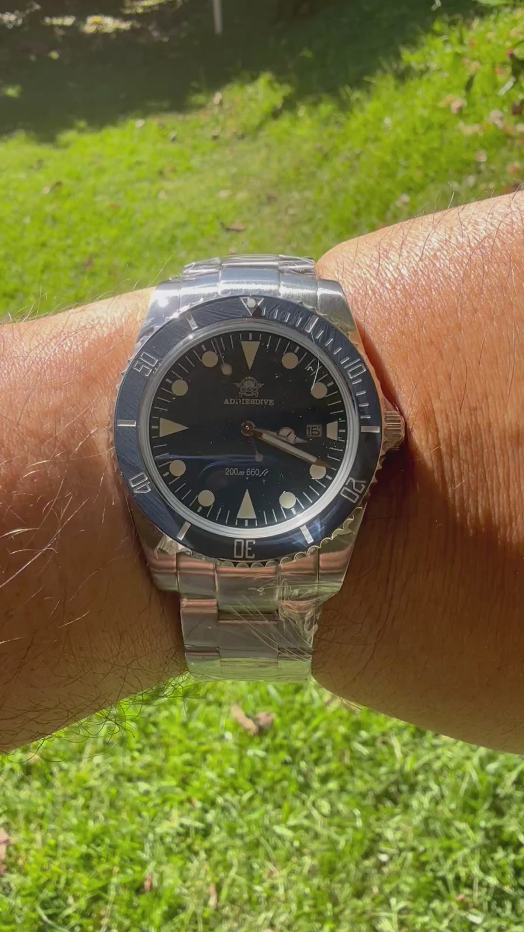 Con una resistencia al agua de 20 BAR / 200 metros , el AD2054 es perfecto para natación, snorkel y buceo, cumpliendo con todos los requisitos de un reloj de buceo fiable. Sus agujas y marcadores están recubiertos con Super Luminova vintage en tono verde-amarillo, asegurando una legibilidad impecable incluso en la oscuridad más profunda.